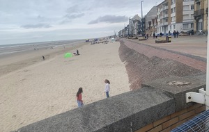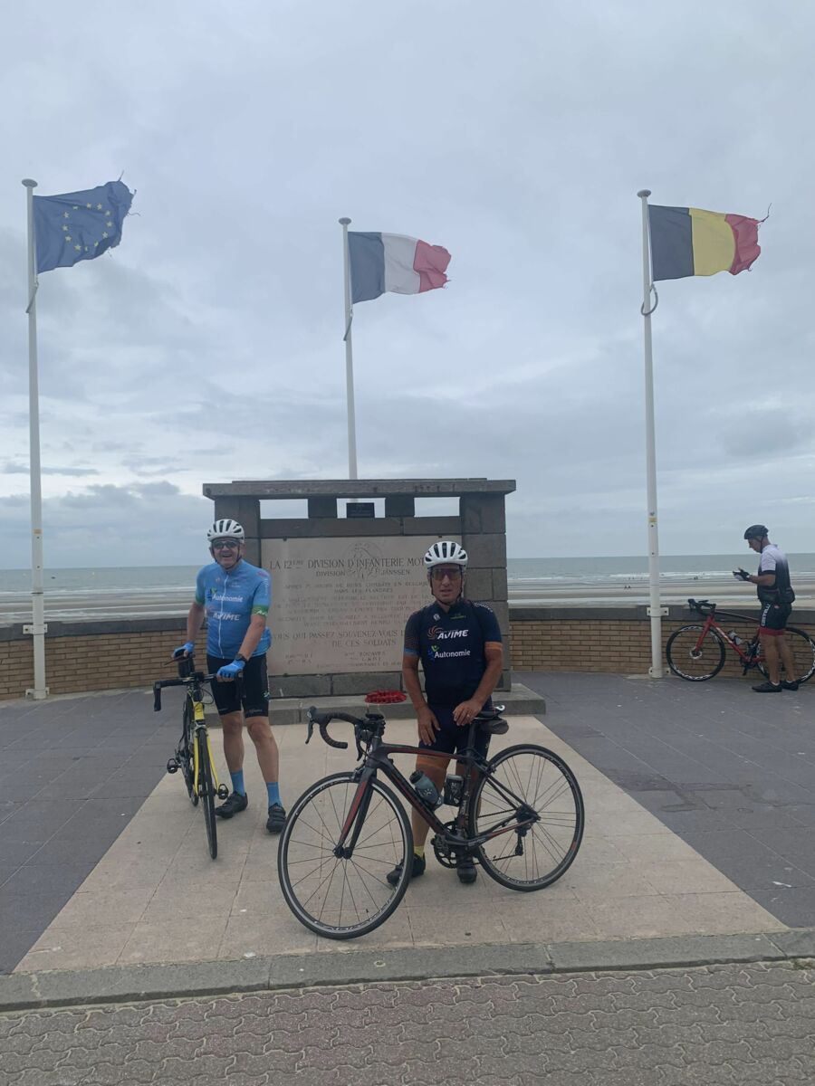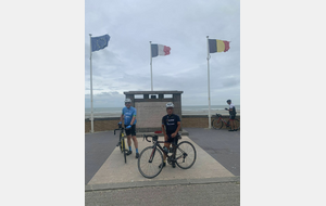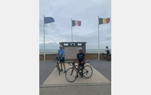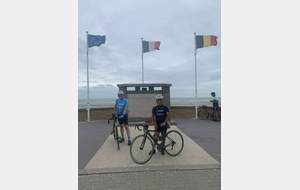 Malgré ces nombreux forfaits, principalement dus à une météo annoncée peu favorable pour le retour, on décida avec Pierre-Gilles de partir. Christian très gentiment se dévoua pour prendre la tête et c’est avec un bon rythme que nous arrivâmes sur le côté du Mont des Cats où Christian prit la direction du retour. Pierre-Gilles prit le relais et à deux nous continuâmes notre progression sans encombre et sans pluie. Il était 11h15 lorsque nous arrivâmes à Ghyvelde lieu de notre restaurant qui n’ouvrait pas avant midi. On en profita pour prolonger notre périple jusque Bray-Dunes et y faire la traditionnelle photo devant la mer.