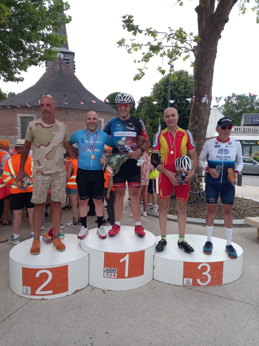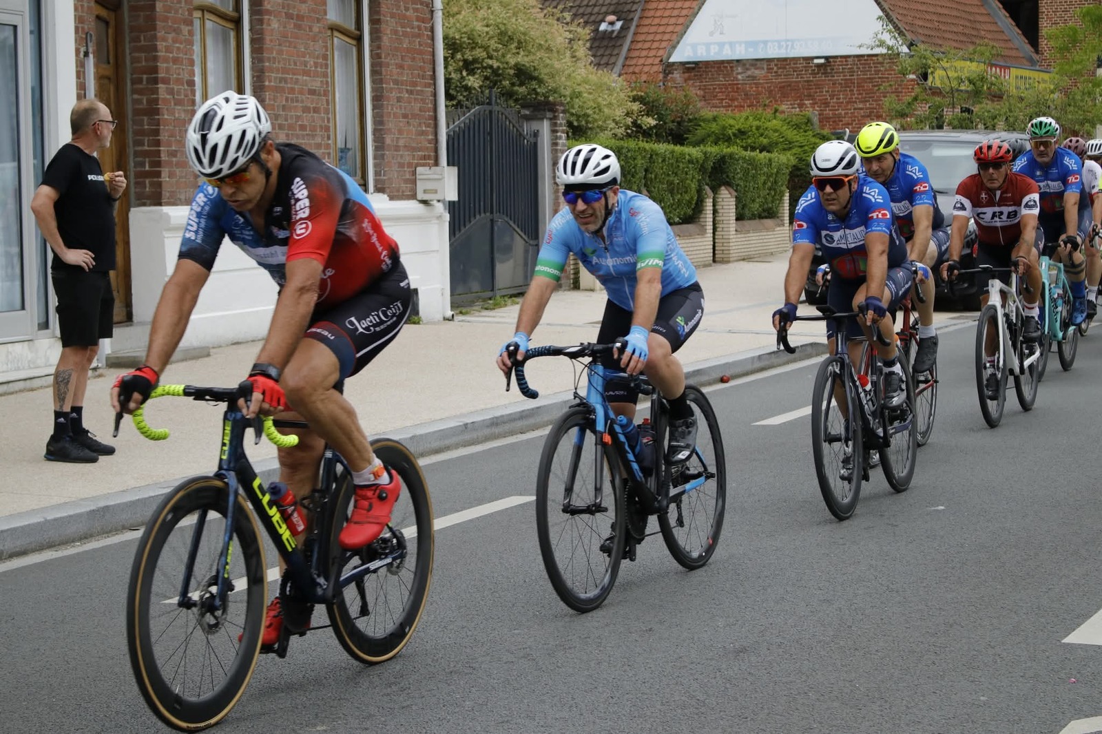 Et moi en 4, j’étais le seul représentant du CCW, Didier m’ayant fait une infidélité 😆, course très soutenue où tous les coups ont été repris sous l'impulsion du club de Maulde qui avait décidé que ça ne sortirait pas, on enchaine les tours et on part dans le tour final, ou je reste placé comme depuis le début de la course, Ali représentant le club d’Harnes met une attaque à environ 800 m, le peloton ne bouge pas et je décide de tenter ma chance faut plat descendant, un virage à 120 ° où j’utilise l'ensemble de la largeur de la route, je sors dans la gouliche comme le dit souvent steeve Chanel sur Eurosport et je pars au sprint où je reprends Ali et me voilà en première position avec une longeur d’avance c’ est sans compter sur un retour impressionnant de Christian qui me saute sur la ligne pour 5 malheureux centimètres😬. C'est la course, c’est comme ça. Ravi de ma 2eme place où nous étions 50 aux départs. On finit avec 50 km à 37 km/h.