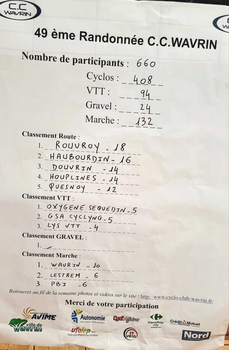 Merci aux 660 participants venus participer à notre 49ème Randonnée, cyclos, vététistes, gravel et marcheurs