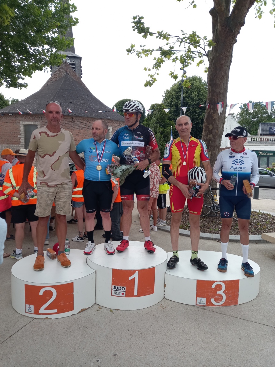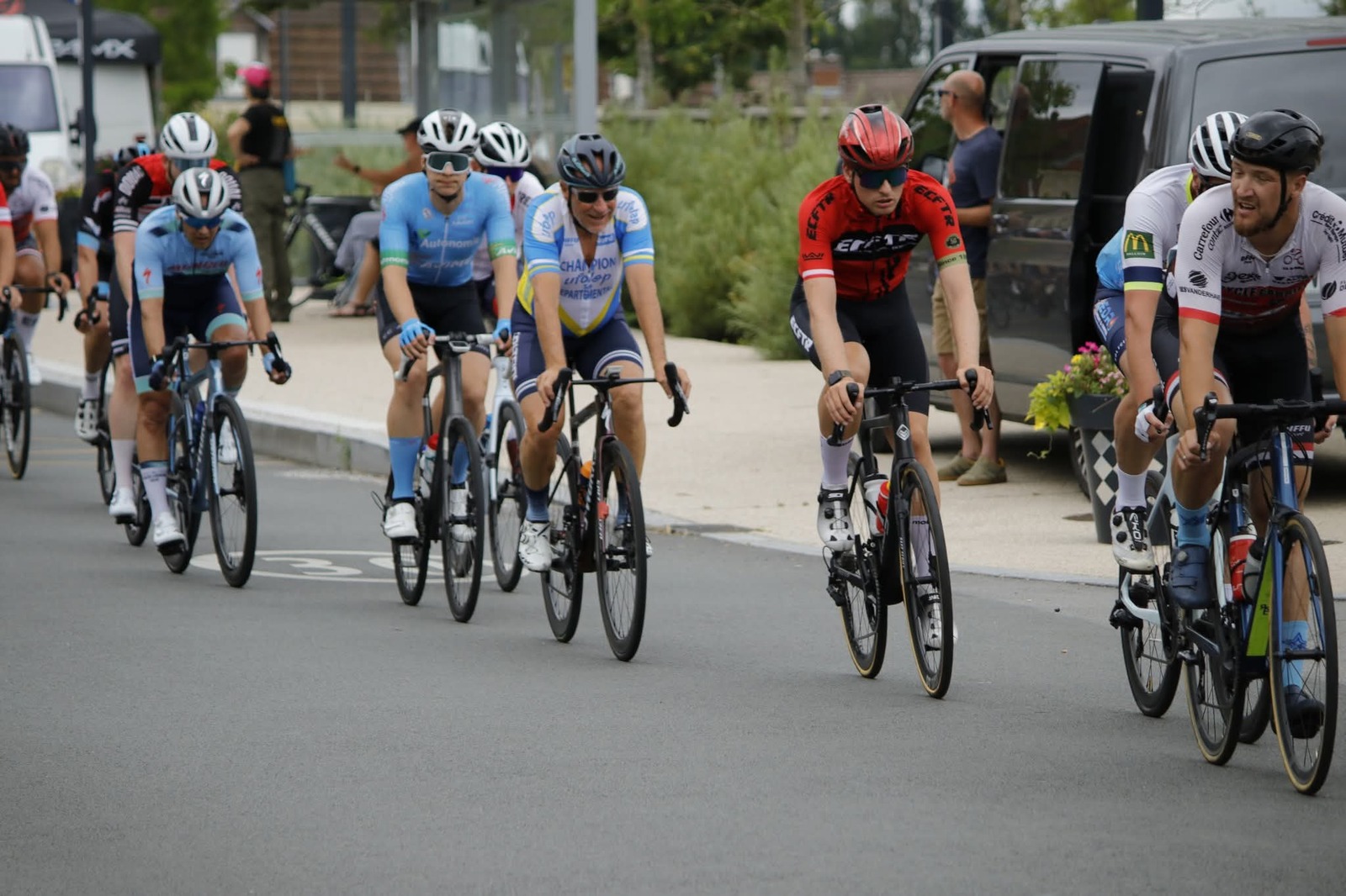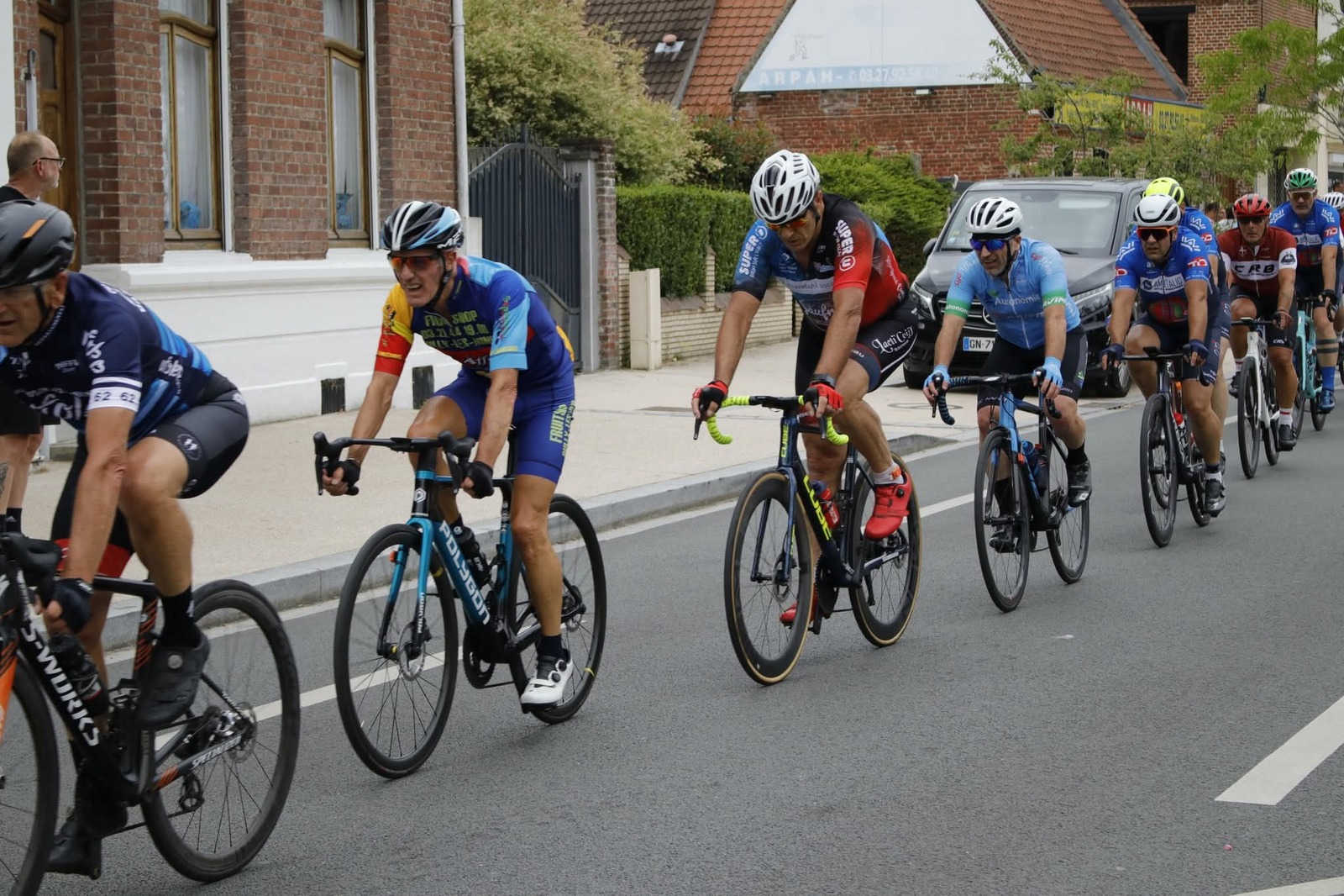 Et moi en 4, j’étais le seul représentant du CCW, Didier m’ayant fait une infidélité 😆, course très soutenue où tous les coups ont été repris sous l'impulsion du club de Maulde qui avait décidé que ça ne sortirait pas, on enchaine les tours et on part dans le tour final, ou je reste placé comme depuis le début de la course, Ali représentant le club d’Harnes met une attaque à environ 800 m, le peloton ne bouge pas et je décide de tenter ma chance faut plat descendant, un virage à 120 ° où j’utilise l'ensemble de la largeur de la route, je sors dans la gouliche comme le dit souvent steeve Chanel sur Eurosport et je pars au sprint où je reprends Ali et me voilà en première position avec une longeur d’avance c’ est sans compter sur un retour impressionnant de Christian qui me saute sur la ligne pour 5 malheureux centimètres😬. C'est la course, c’est comme ça. Ravi de ma 2eme place où nous étions 50 aux départs. On finit avec 50 km à 37 km/h.